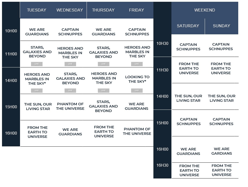 *On 28 November, at 2:00 p.m., the live session - Looking at the Sky - will be presented in English.
